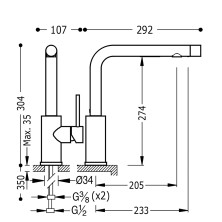Con esta grifería dispondremos de una doble función. Por una parte, el agua de toda la vida de la red que saldrá por el aireador grande. Por otra parte, podremos contar con agua tratada que saldrá por el filtro pequeño. Necesaria la instalación de osmosis.