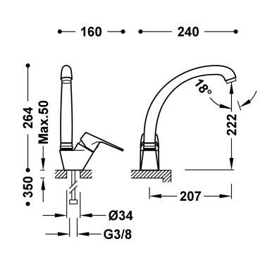 Grifo monomando de cocina para instalación sobre fregadero presenta: