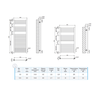 - Para instalaciones bitubo se recomienda conectar la ida y el retorno por la parte inferior del radiador.